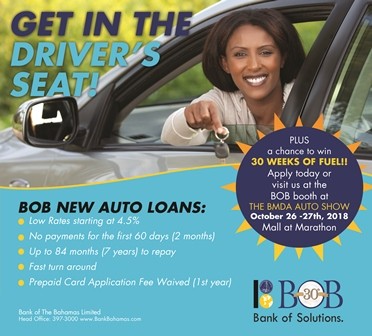 Read MoreBOB will be at the Bahamas Motor Dealers Auto Show October 20-21st to provide financing up to 7 years with great, low rates on loans for new vehicle purchases...