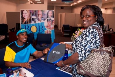The Golden Knight experienced an outpouring of love and well wishes from BOB customers and the general public who lined up to meet him and obtain autographed photos and signed BOB paraphernalia from one of the county’s most well-known and admired athletes. Fans included people from all walks of life; men women and children, not least among them The Hon. Arthur D. Hanna, former Governor General of The Bahamas.