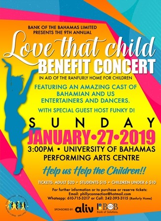 The Love that Child Benefit Concert is back for its 9th Annual Season! Once again BOB presents an amazing cast of young Bahamian and American Entertainers performing to raise funds for the Ranfurly Home for Children. On Sunday, January 27th at 3pm, come out to UB's Performing Arts Centre and bring the whole family for an afternoon of non-stop talent on display! All for a wonderful cause.