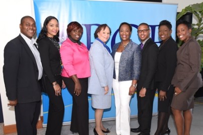 MANAGERS ON DUTY (L-R) Byron Miller, Harrold Road branch manager; Felicia Burrows, Sr. Credit Officer, Carmichael Road Branch; De’andre Rolle, Sr. Operations Officer, Carmichael Road Branch; Deirdre Bethell, Thompson Blvd. branch manager ; Nicole Holder, Sr. Manager, Sales & Service; Pedro Burrows, Carmichael Road branch manager; Patricia James, Village Road branch manager; and Anastasia Russel, Service Solutions Manager.